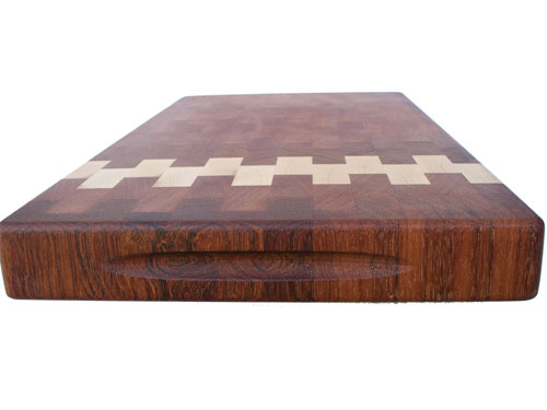 A stunning combination of Jatoba and Maple. It has rounded edges and recessed handles. Fully reversible and will compliment any kitchen decor.